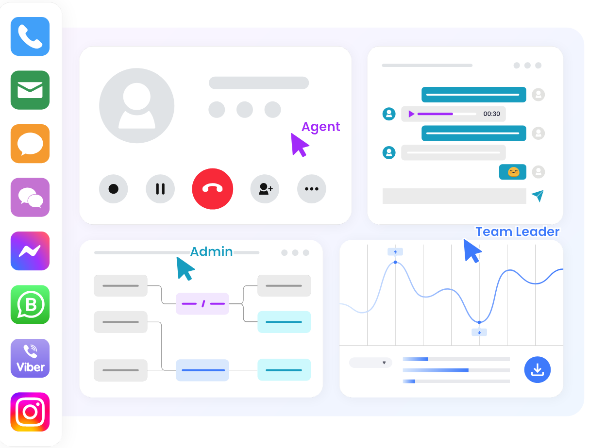 Our platform brings all communication channels together into one intelligent interface, allowing your team to respond faster, resolve issues efficiently, and provide a seamless customer experience.